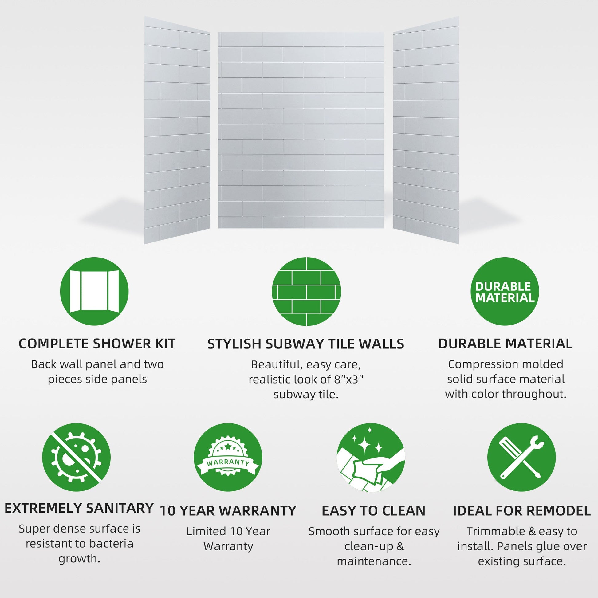 ? [EASY TO CLEAN]: The non-porous surface repels dirt, soap scum, and hard water stains, making maintenance a breeze. Simply wipe with a damp cloth and mild cleaner to keep your shower looking pristine.