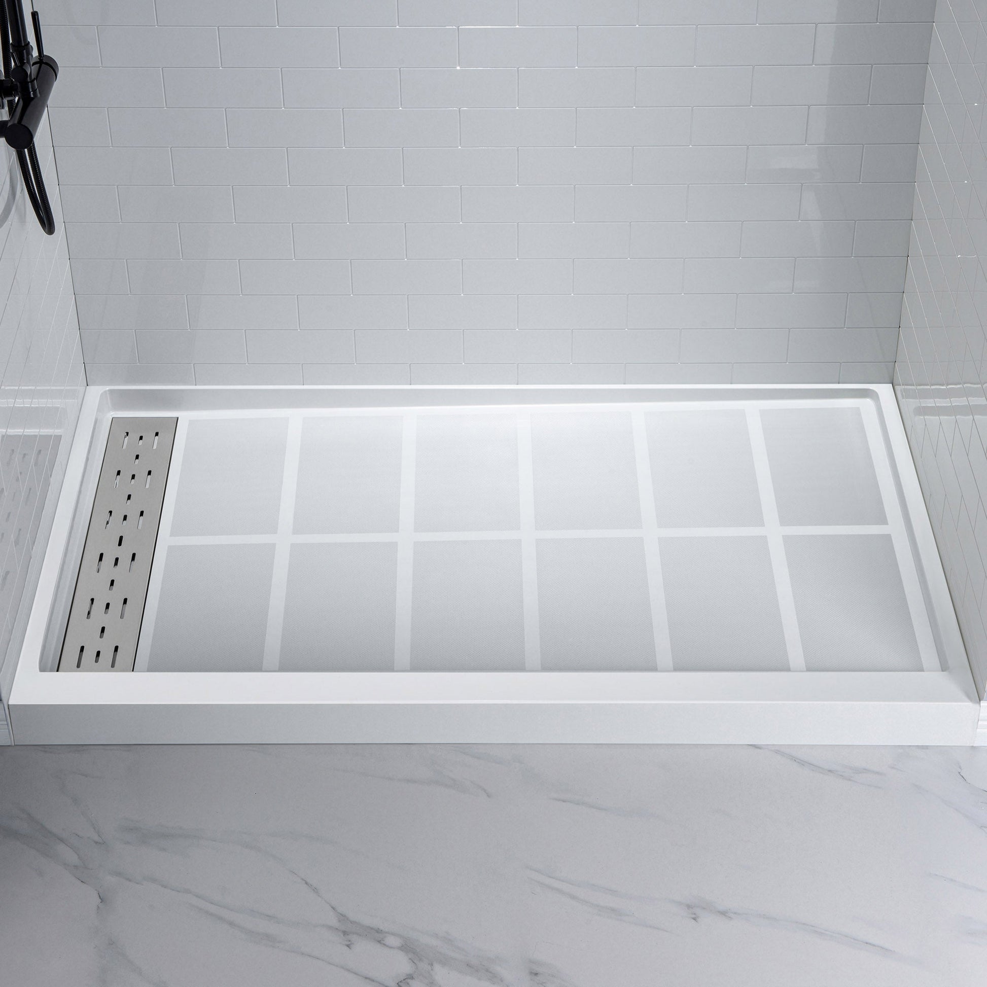 ? [EASY TO CLEAN]: The non-porous surface repels dirt, soap scum, and hard water stains, making maintenance a breeze. Simply wipe with a damp cloth and mild cleaner to keep your shower looking pristine.