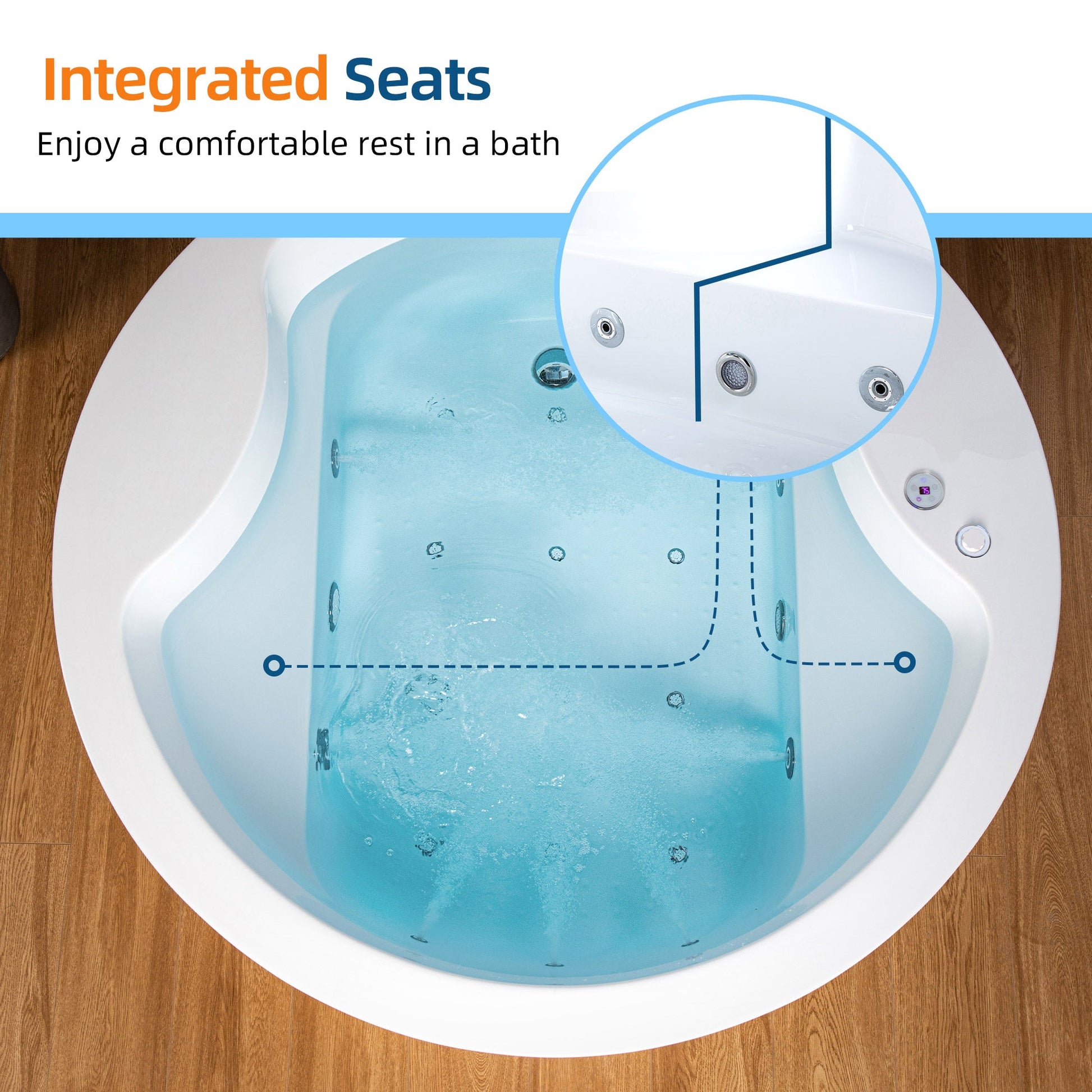 ? [HEATED SOAKING TUB]: Inline heater keeps water hot longer. Control temperature with LED panel.