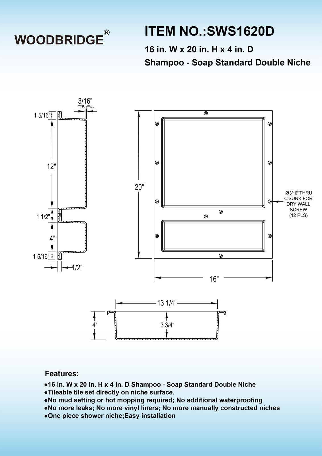 WOODBRIDGE SW1620D Shampoo/Soap Double Niche, Black