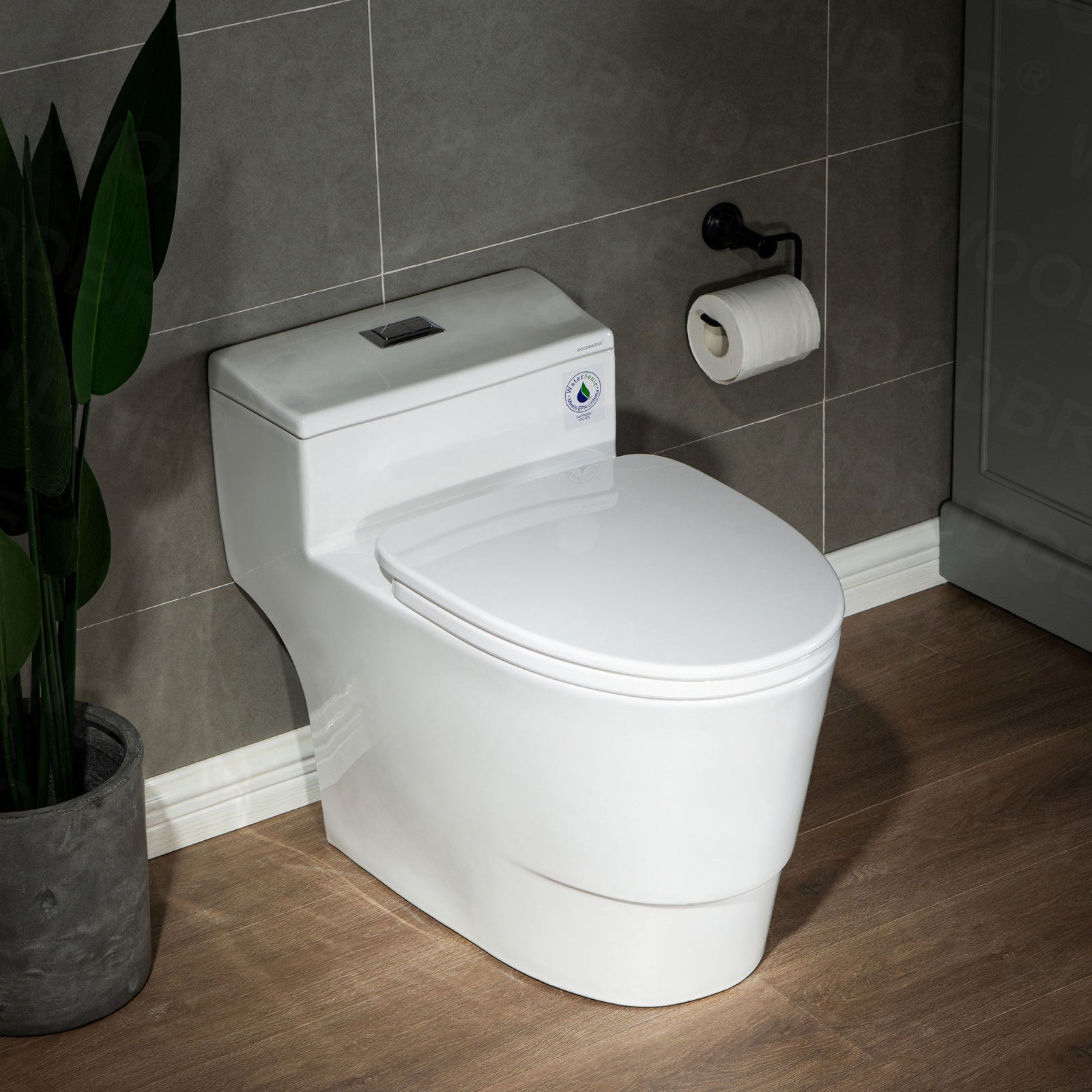 ? [All-in-One Package Design]: Includes toilet, pre-installed soft closing toilet seat, high quality wax ring, floor bolts, and installation instruction, Easy installation Design: Include special hand wrench tool to easily tighten the bolts in narrow spaces