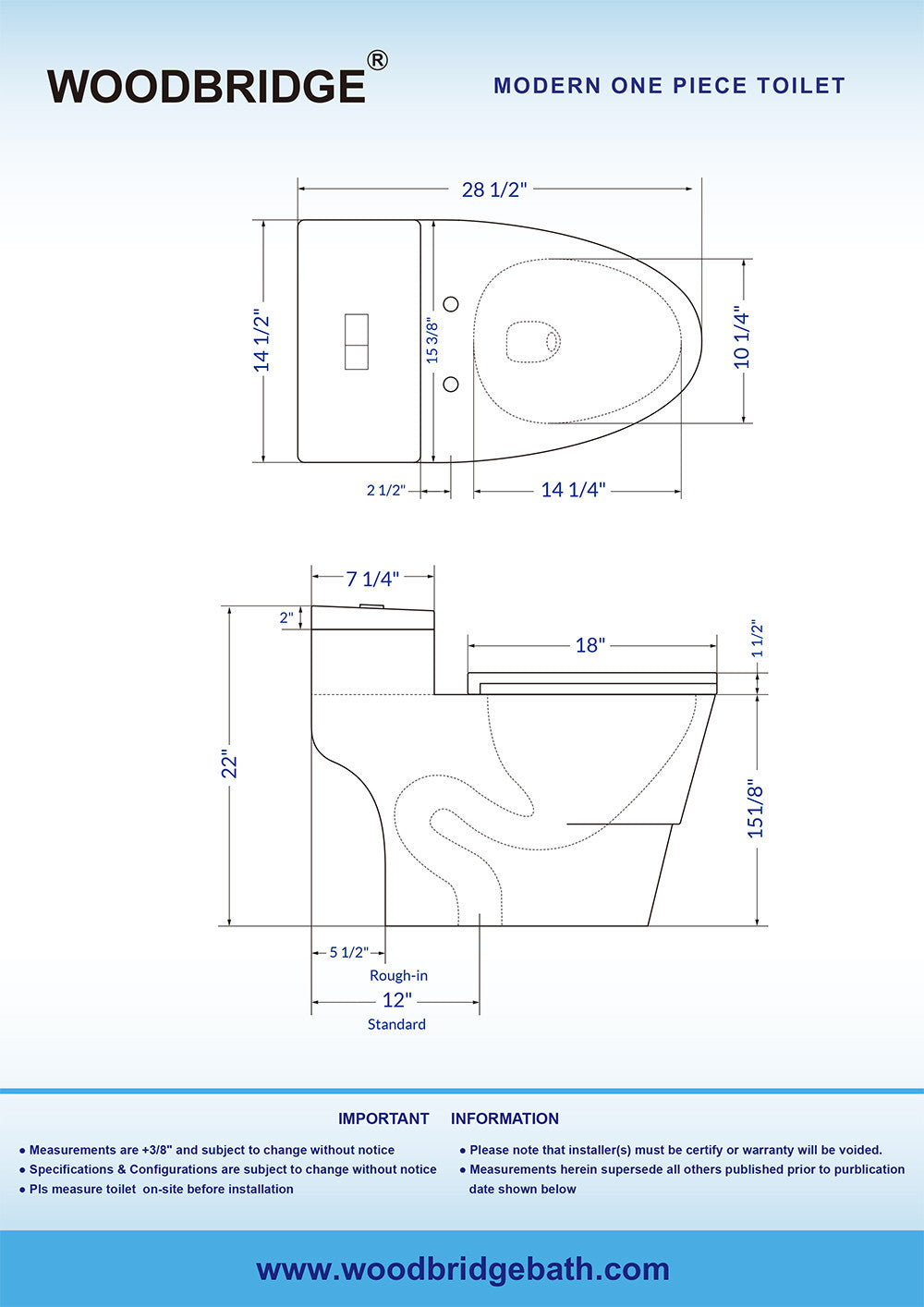 WOODBRIDGE T-0018/B-0735 Dual Flush Elongated One Piece Soft Closing Seat, Comfort Height, White