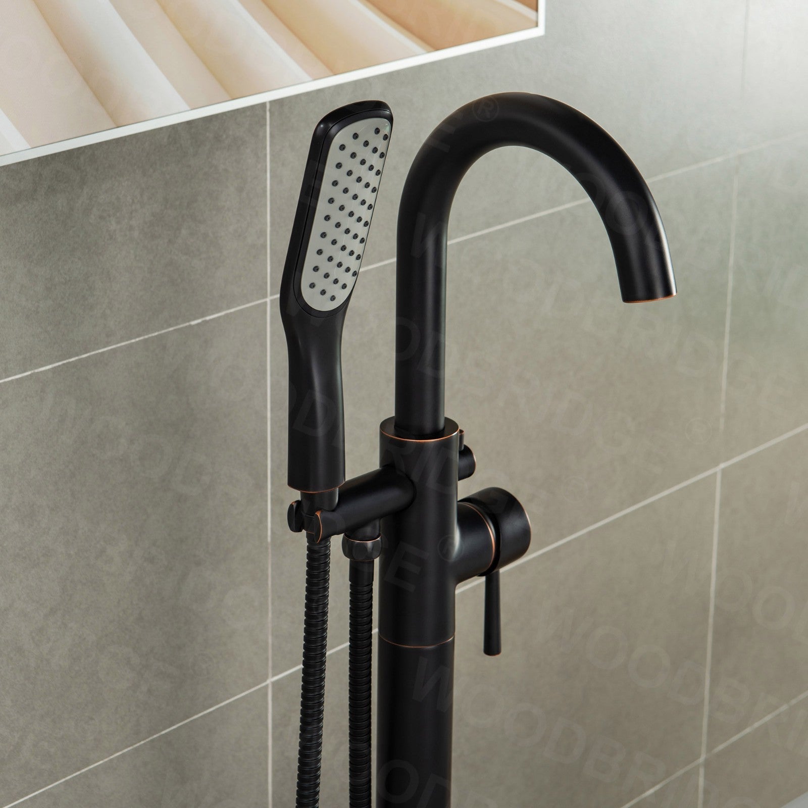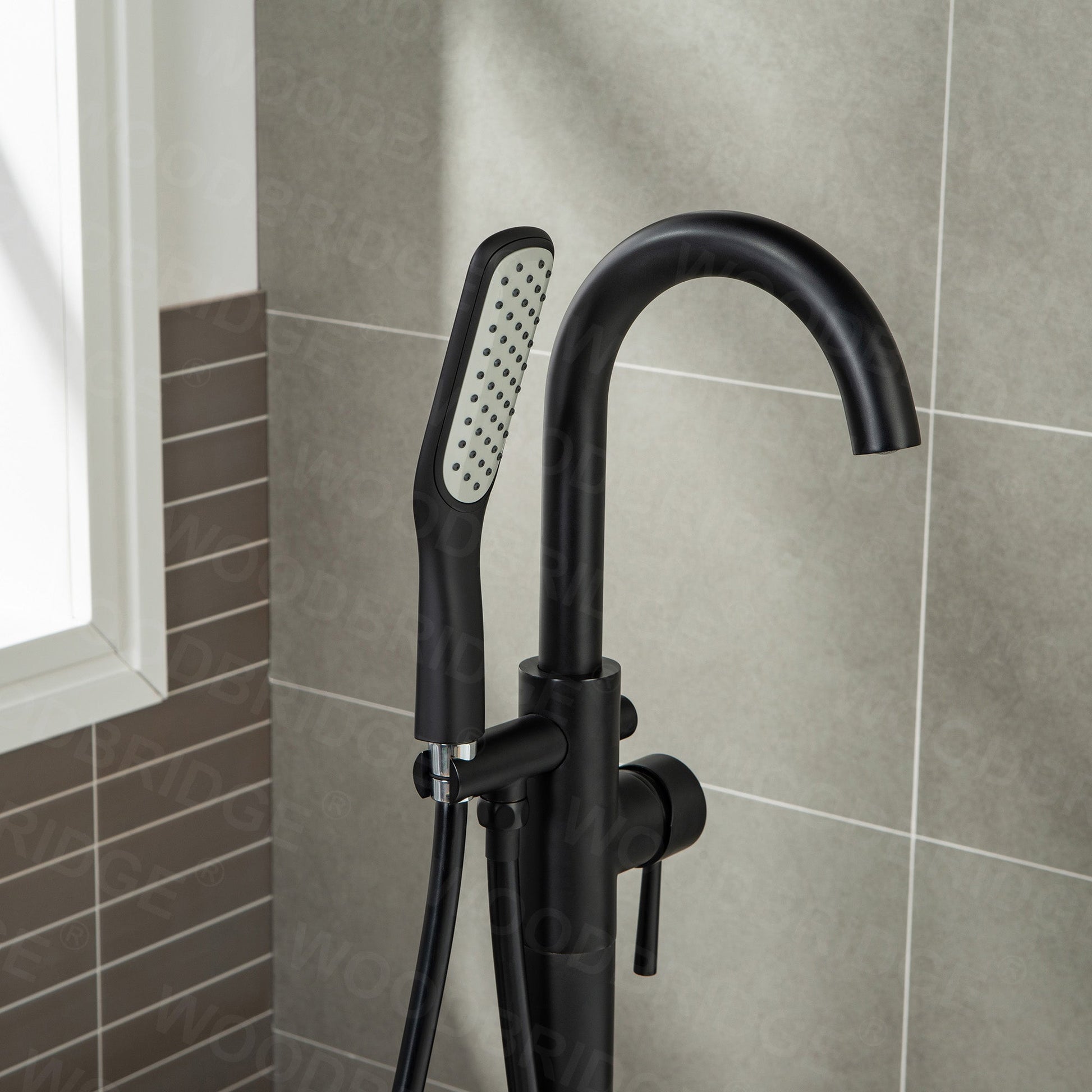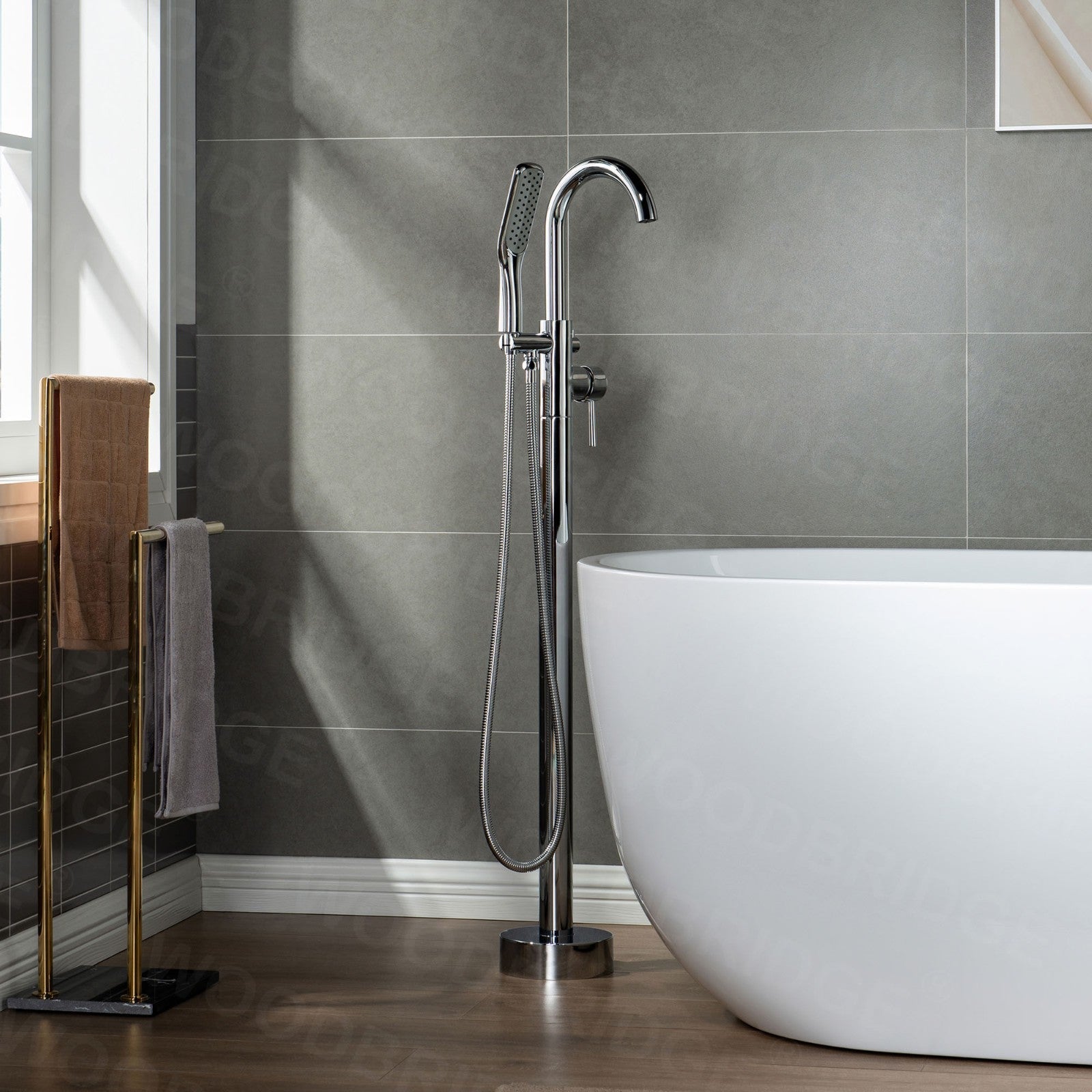 WOODBRIDGE WOODBRIDGEE Contemporary Single Handle Floor Mount Freestanding Tub Filler Faucet with Hand Shower