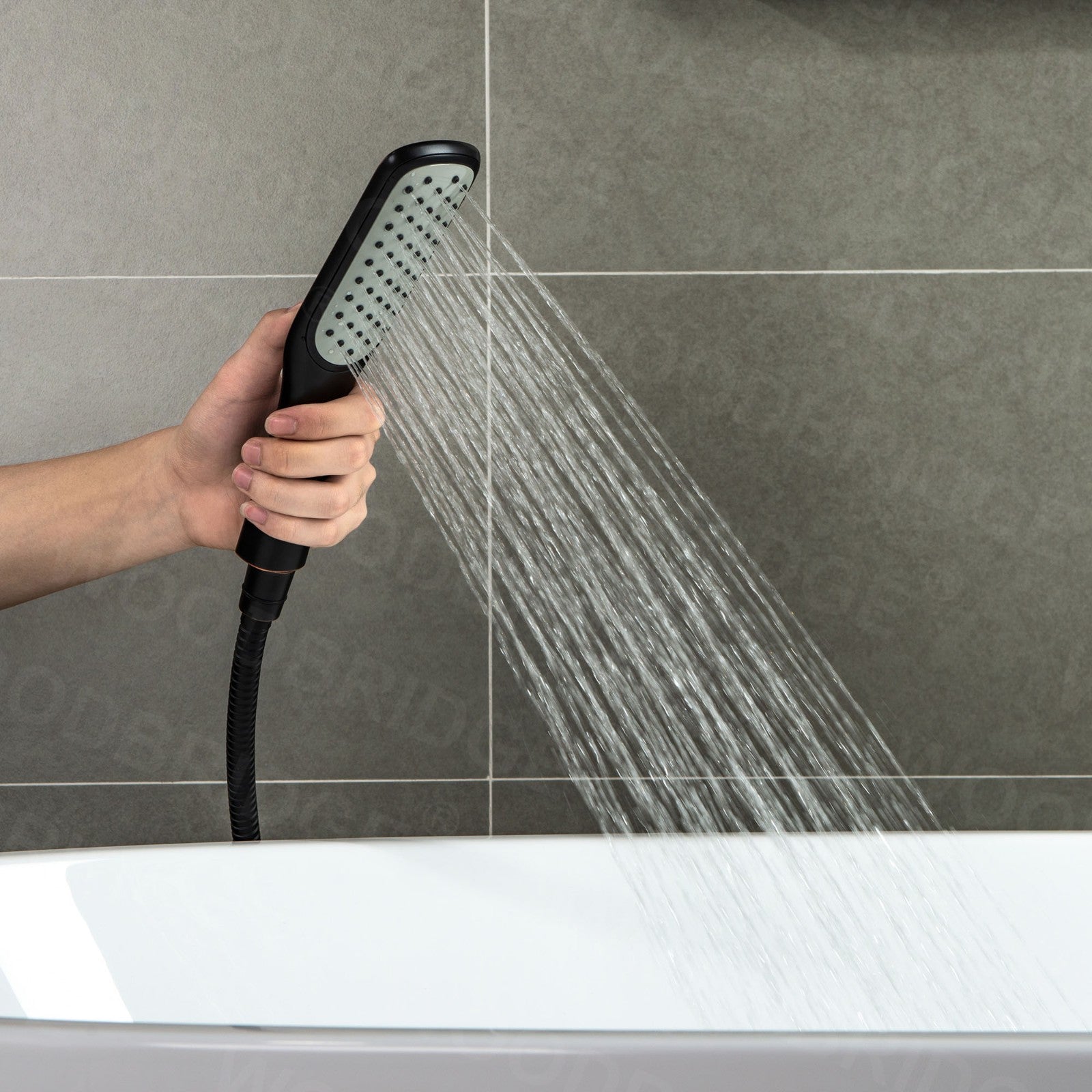? [HANDSHOWER AND HOSE]: Contemporary Square Hand Shower with Comfort Grip and a matching 60-inch double spiral stainless steel shower hose is great for rinsing off after a bath, hair washing, tub cleaning and washing pets.