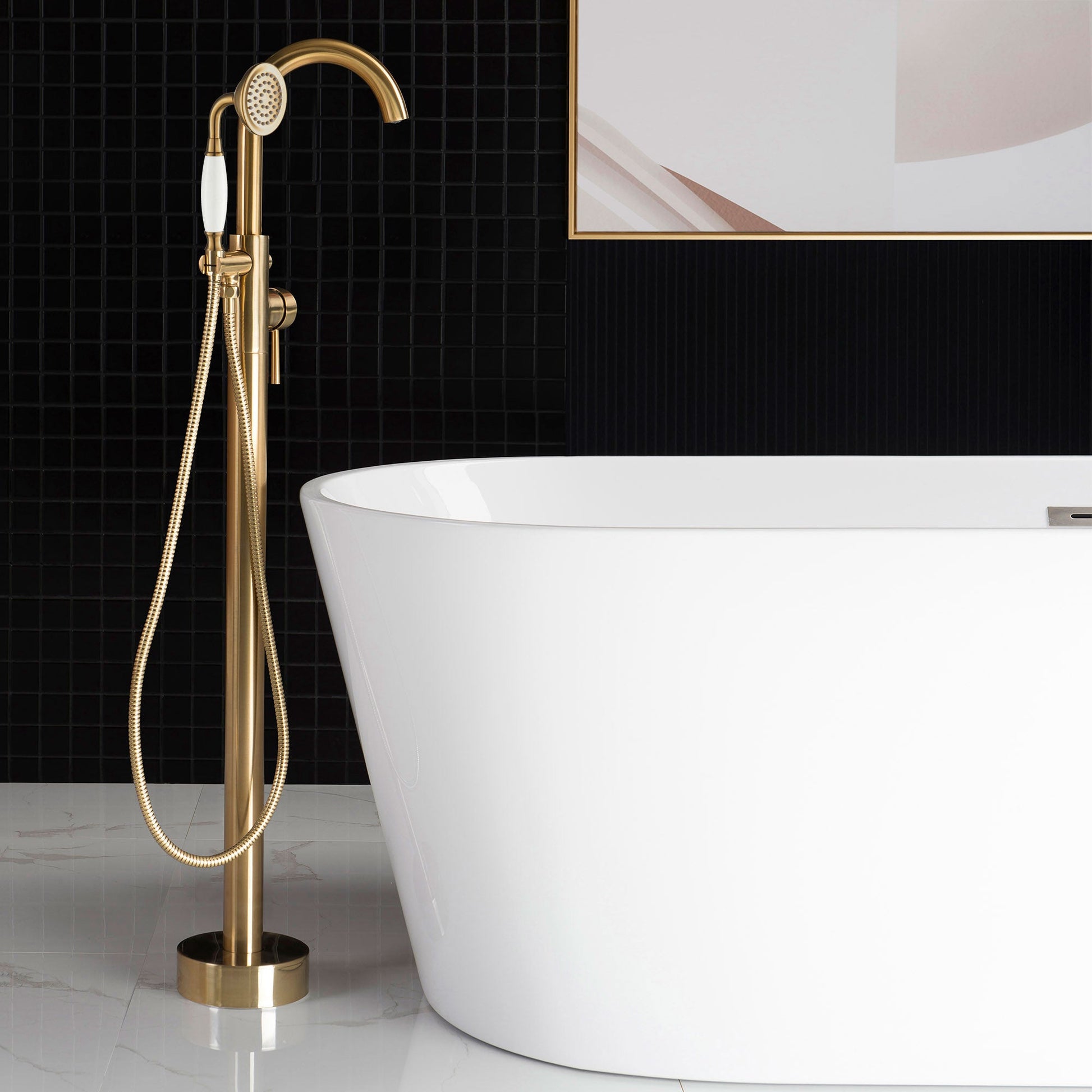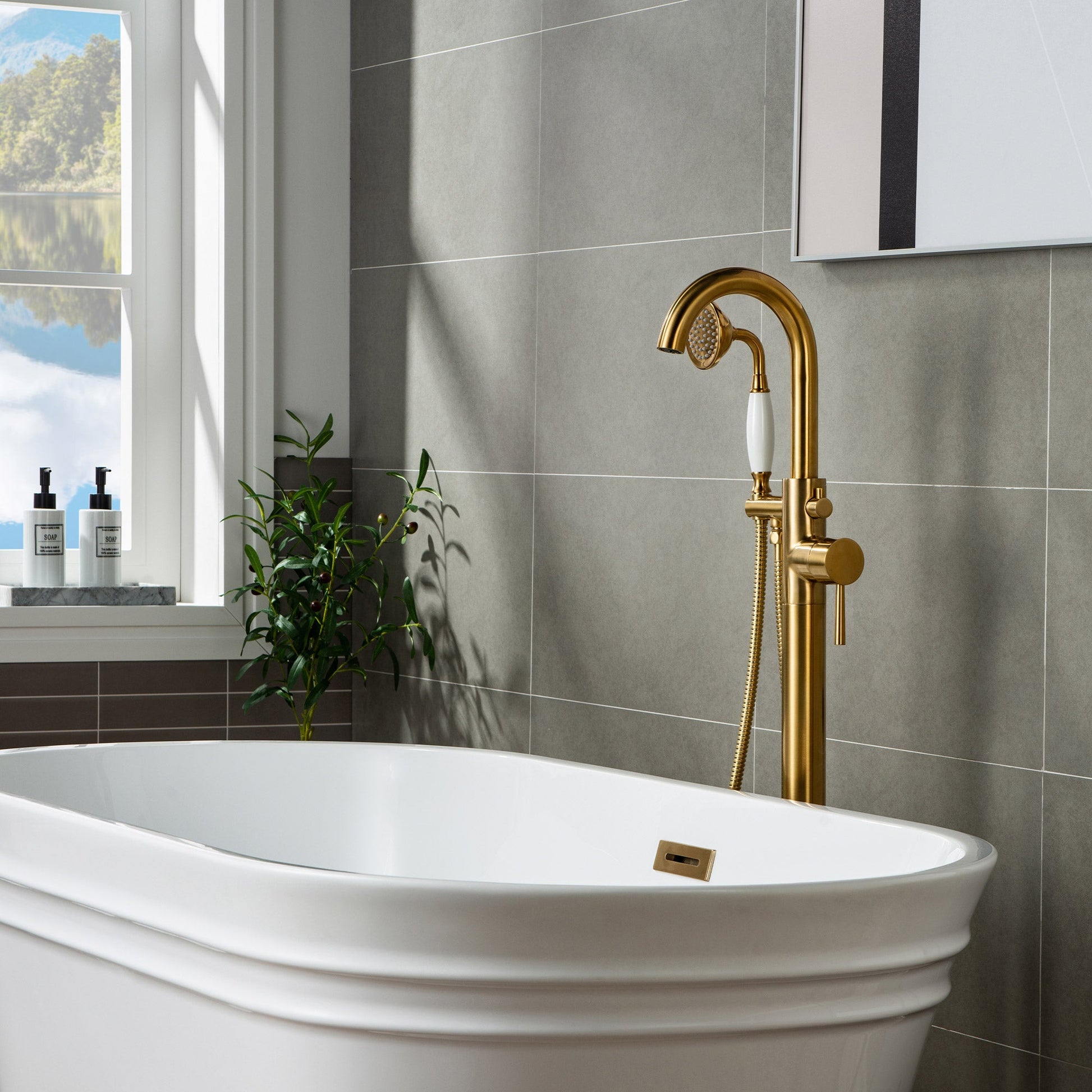 ? [DESIGN INSPIRATION]: Quick freestanding mount to floor design with high and rigid tripod mounting bracket and hardware included. Easy operation single handle design allows flow rate and temperature control in single hand. High Arch 360 Degree Swivel Spout.