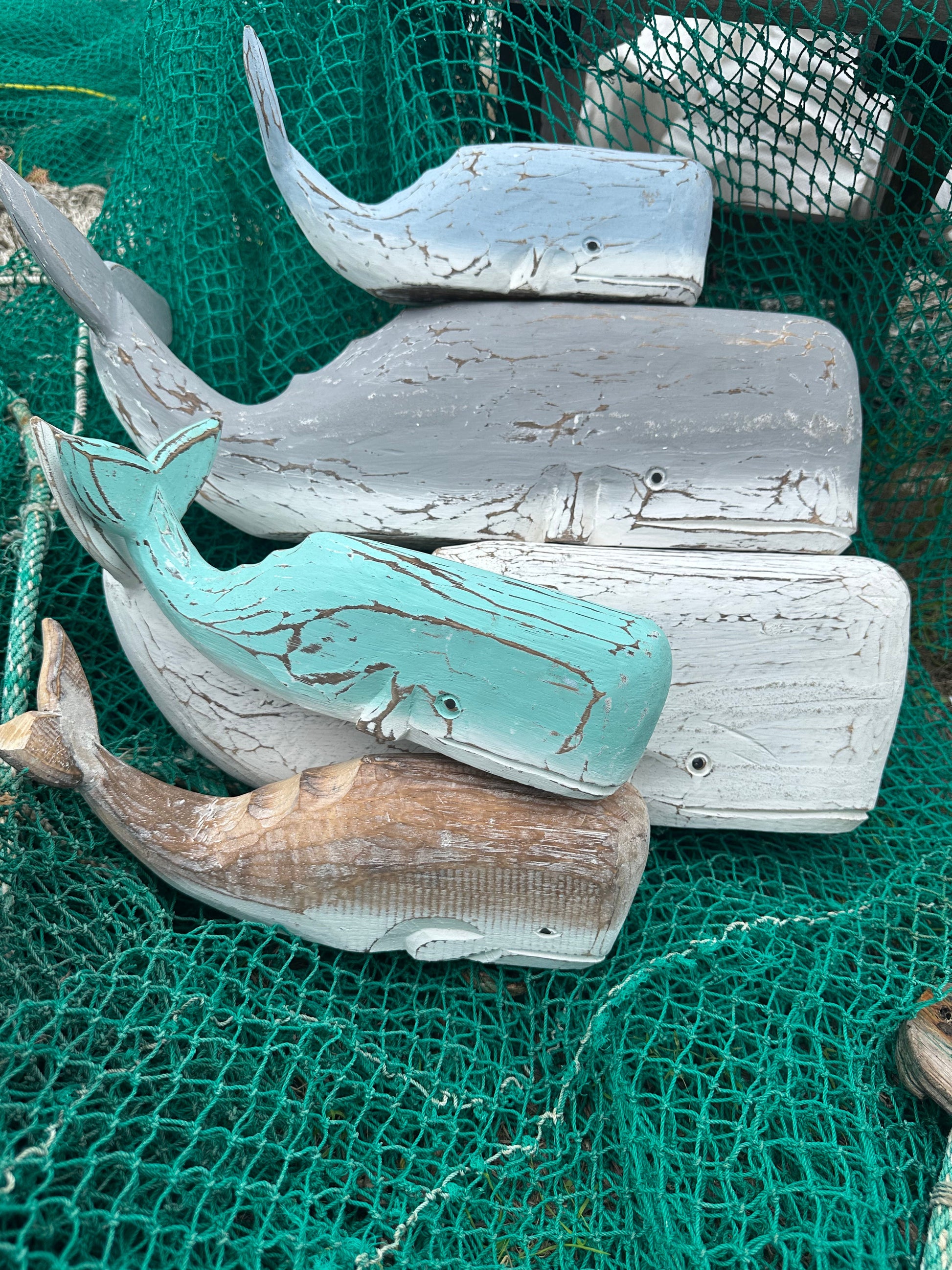 Embrace the charm of the ocean with these hand-carved wooden whale sculptures, available in gray, white, brown, light teal, and blue with a rustic, distressed finish. Their simple yet elegant design adds a coastal touch to any space, making them perfect for beach houses, nautical-themed interiors, or ocean lovers.