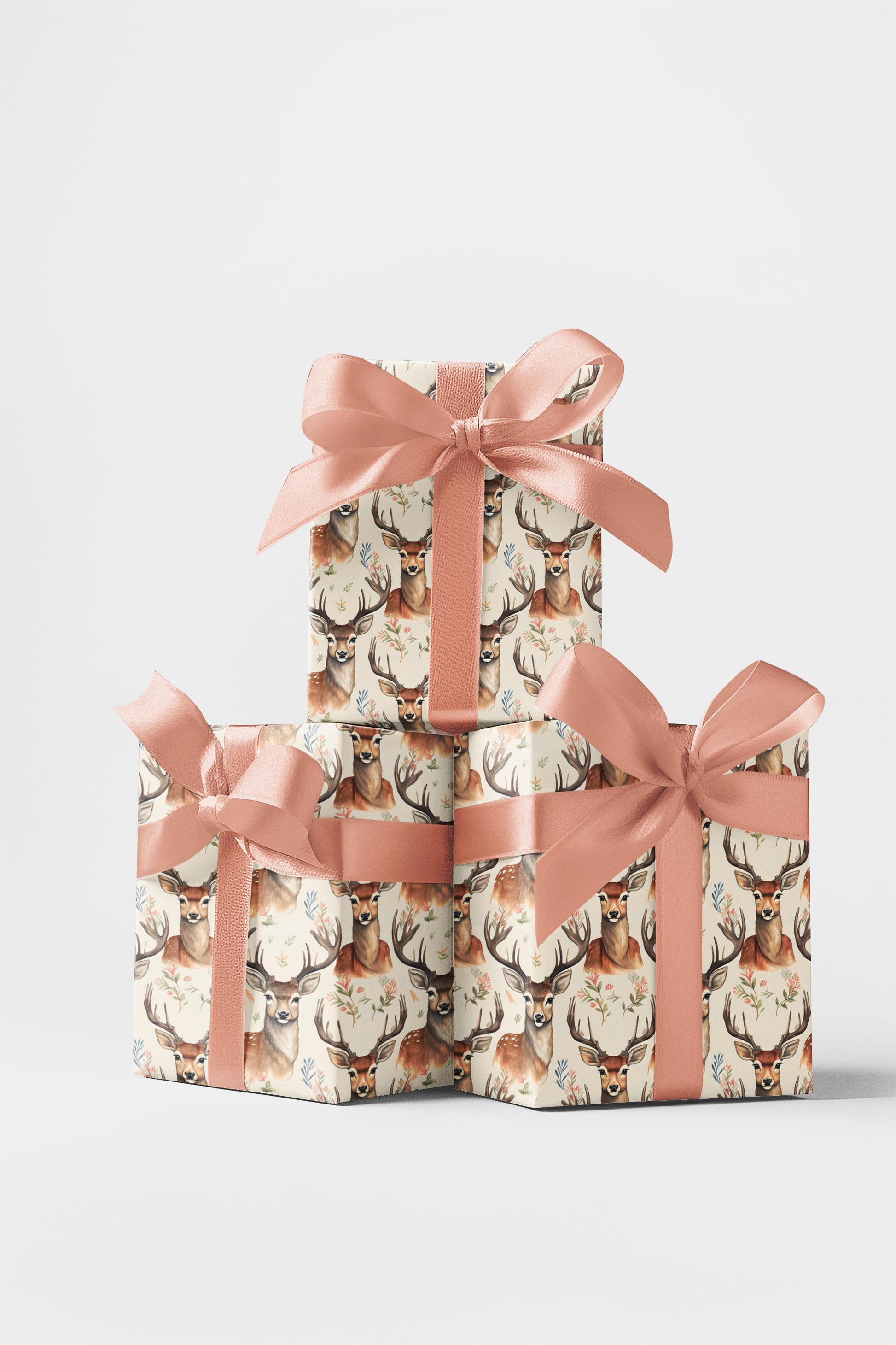 Woodland Grace is a cozy yet elegant wrapping paper featuring cute hand-painted woodland deer with delicate watercolor details, set against a soft neutral background. With its gentle tones and enchanting forest motifs, this design blends whimsical charm with rustic warmth. Perfect for birthdays, baby showers, or anyone who loves woodland-inspired style, this wrapping paper adds a tender and magical touch to every gift.