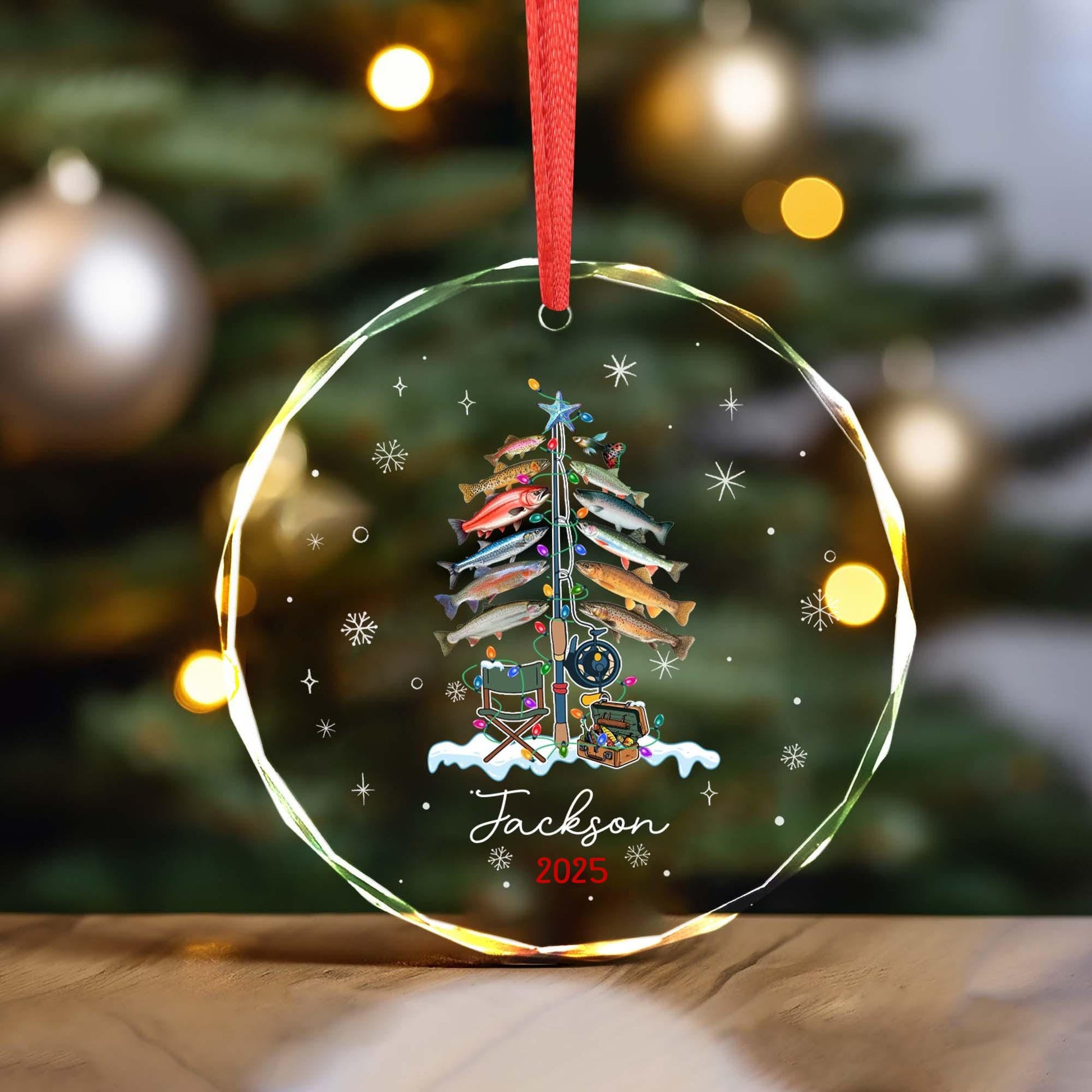 Xmas Tree Decor Gift For Fishing Lovers - Personalized Circle Glass Ornament - Christmas Gift For Fishing Lovers, Fishing Man