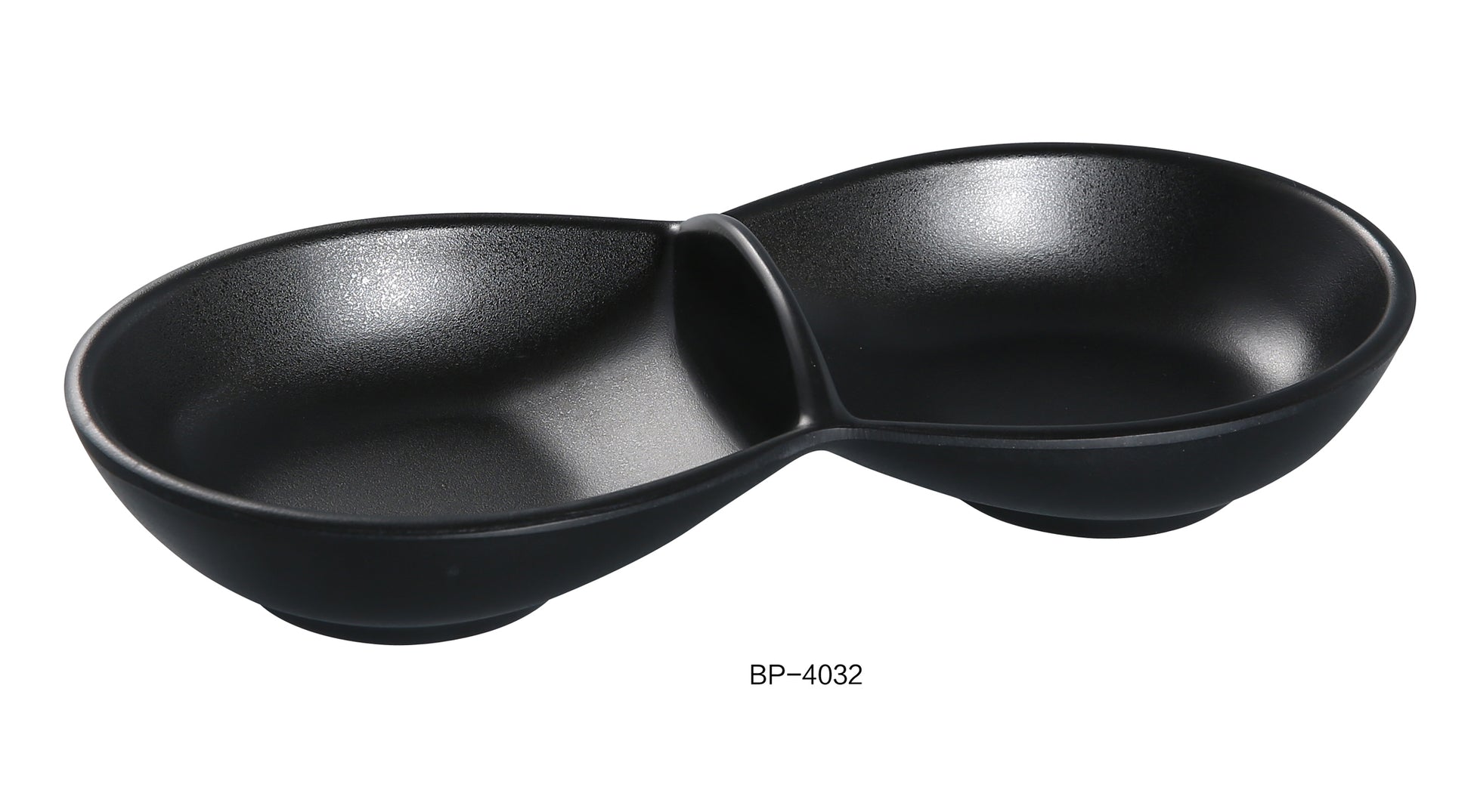 Yanco BP-4032 Black Pearl-2 Double Sauce Bowl, 8.5" Diameter, 3.5" Height, Melamine, Black Color with Matting Finish, Pack of 48