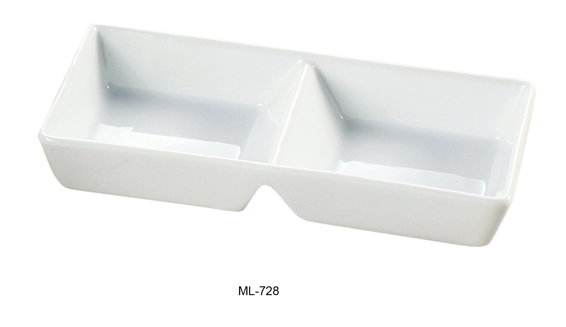 Yanco ML-728 Two Divided Tray, 2 X 10 oz Wells, 10" Length x 1.625" Height, 4" Width, , Porcelain, Super White Color, Pack of 24