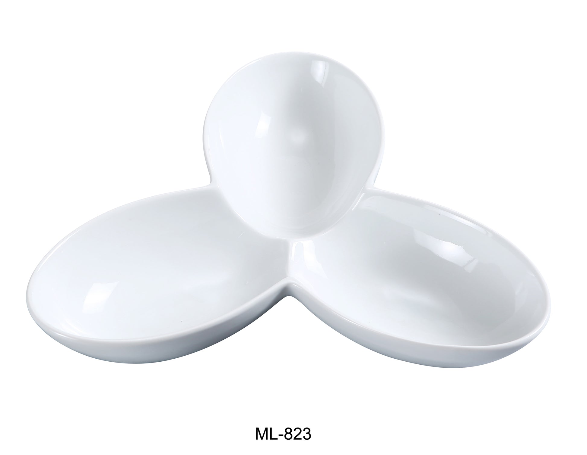 Yanco ML-823 Three Divided Bowl, 6 Oz/Well, 11" Length, 8.5" Width, Porcelain, Super White, Pack of 12