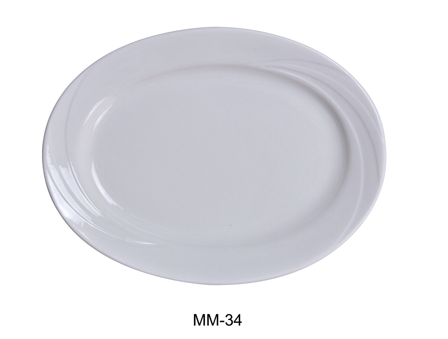 Yanco MM-34 Miami Oval Platter, 9.25" Length x 7" Width, Porcelain, Bone White, Pack of 24