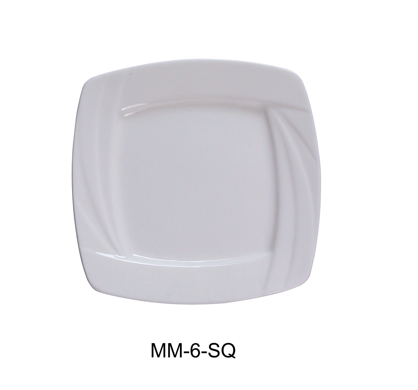 Yanco MM-6-SQ Miami 6" Square Plate, Porcelain, Bone White, Pack of 36
