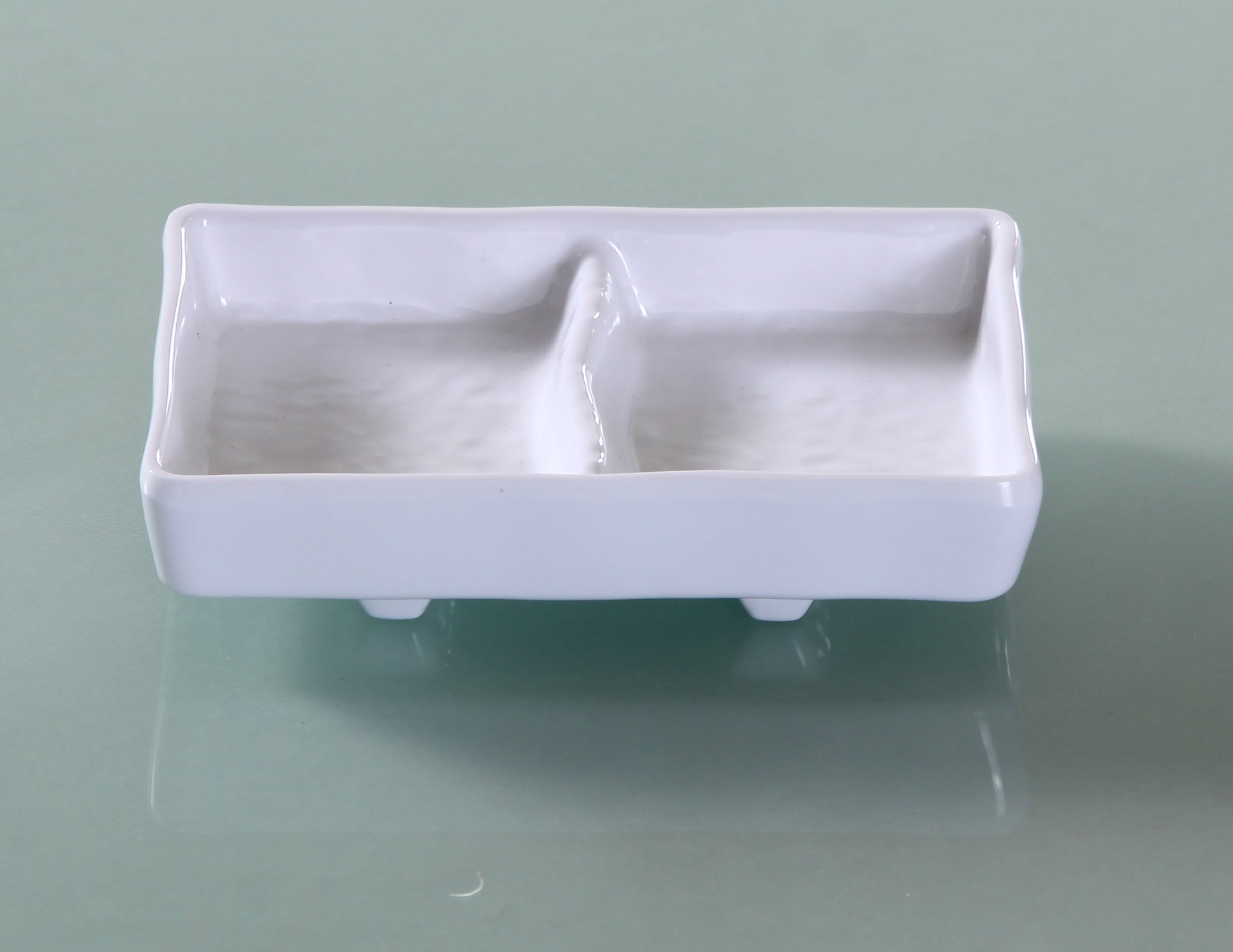 Yanco OK-4031 Osaka-2 Sauce Dish, Double Divided, 5.75" Length, 2.75" Width, Melamine, White Color, Pack of 72