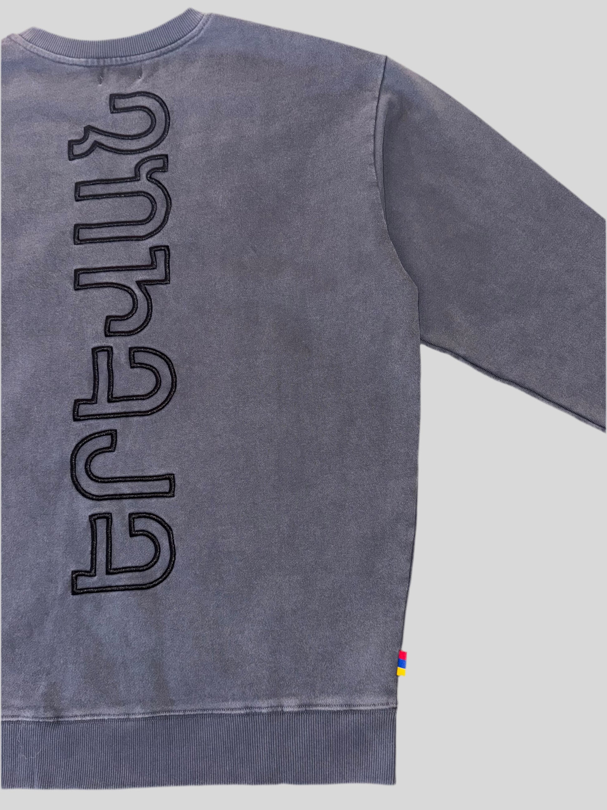 YEREVAN Embroidered design and logo 100% cotton oversized crewneck sweatshirt (dress)- dark vintage gray