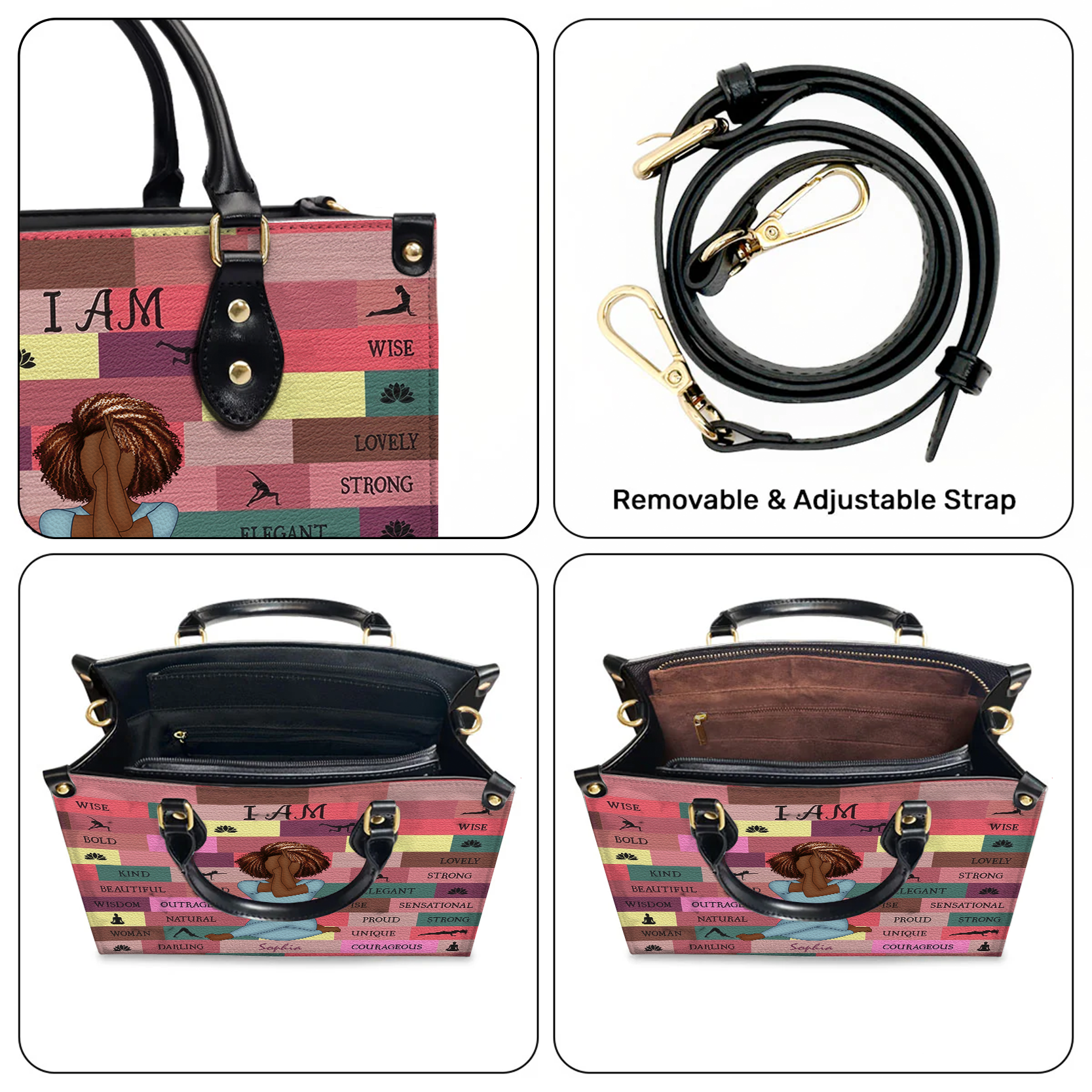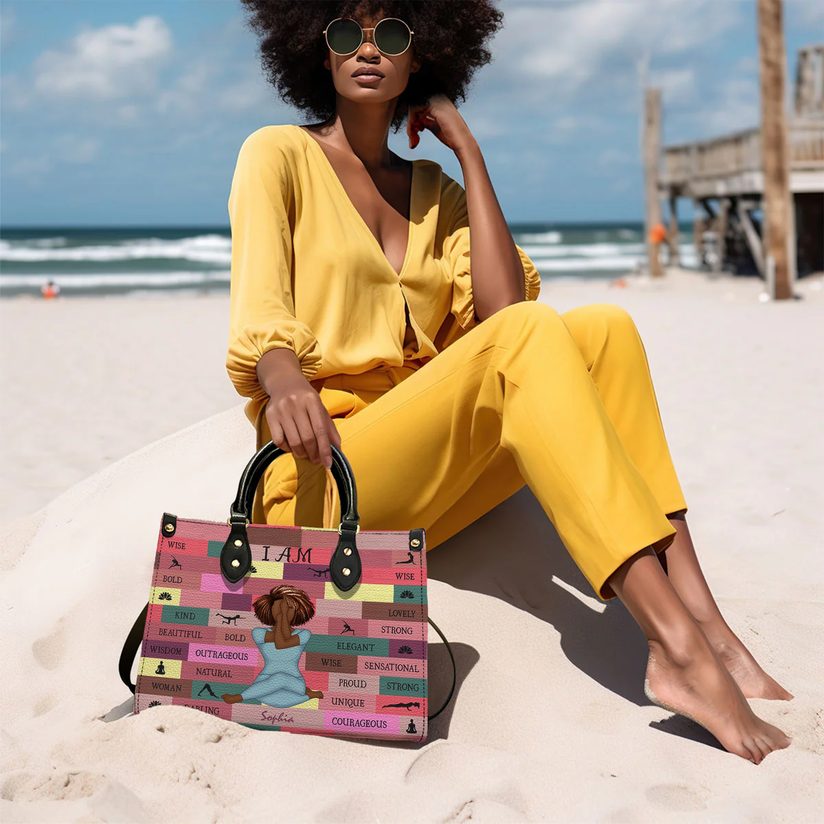 Yoga Girl I Am Bold - Personalized Black Girl Handbag - Gift For Yourself, Gift For Women, Yoga Lovers
