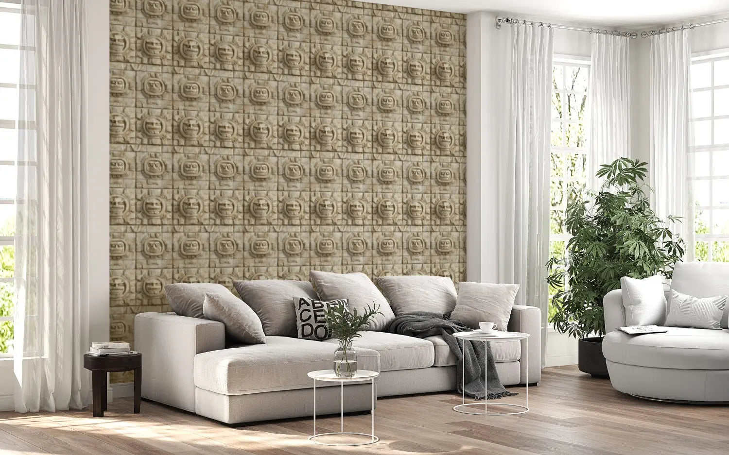 Transform your space with a design inspired by ancient stonework and sunlit temples. Zapotec Sunstone Temple Wall brings warm sandstone tones and refined geometric motifs to modern interiors, creating a grounded, artful backdrop for living rooms, bedrooms, entryways, and creative studios.