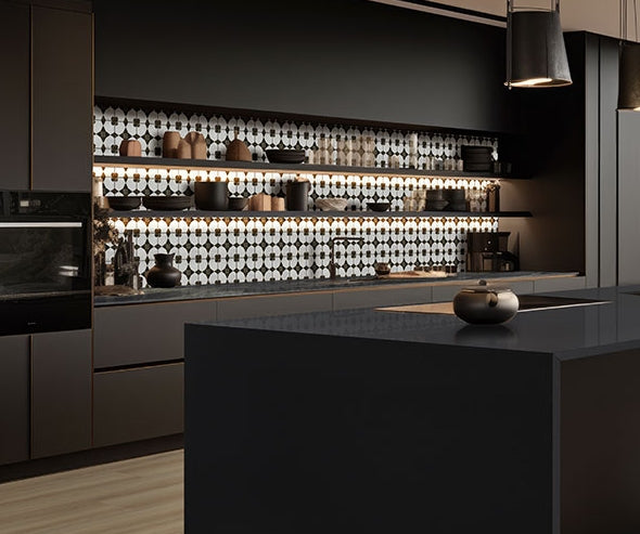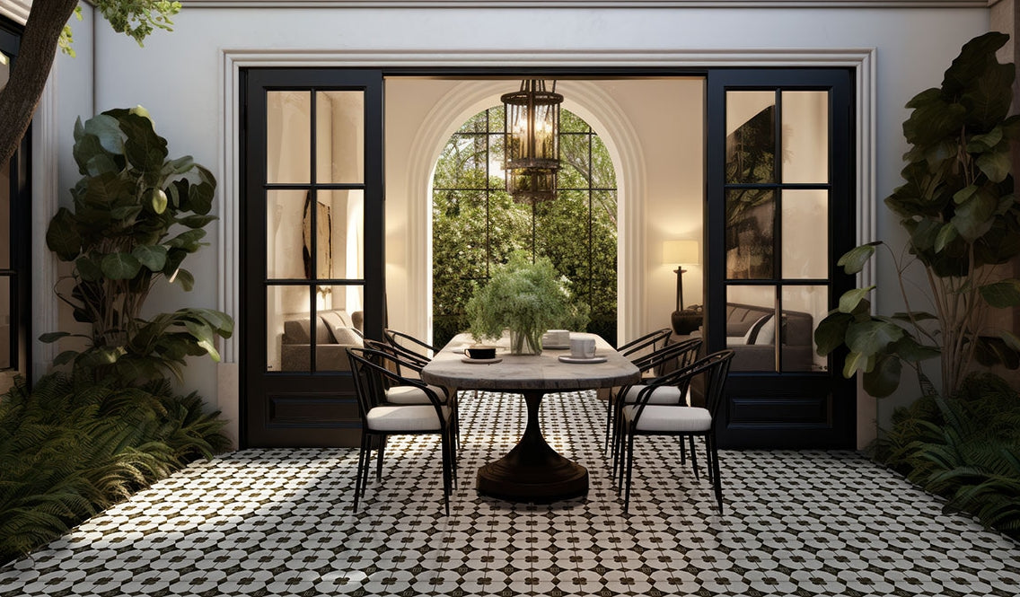 Sakura Porcelain Tile from our Zaria Collection features a charming white background adorned with a black geometric print that has subtle floral influences. This playful tile boasts a matte finish and works wonders on backsplashes, floors, showers, countertops, and more. Each tile is meticulously crafted by hand and fits seamlessly with others to create a larger, cohesive design. Not only is it easy to clean and durable, but it also requires no maintenance, making it the ultimate choice for active homes with busy kitchens, entries, and various living areas. Give your space a fresh new look with Sakura Encaustic Tile today.