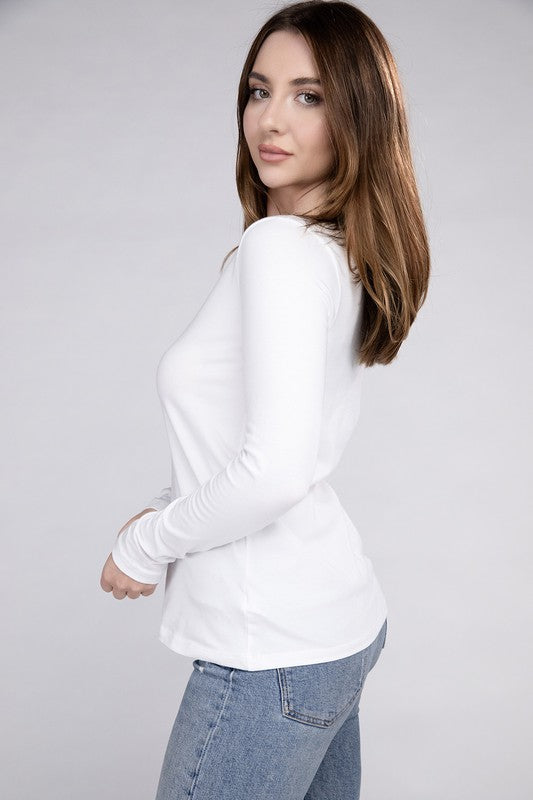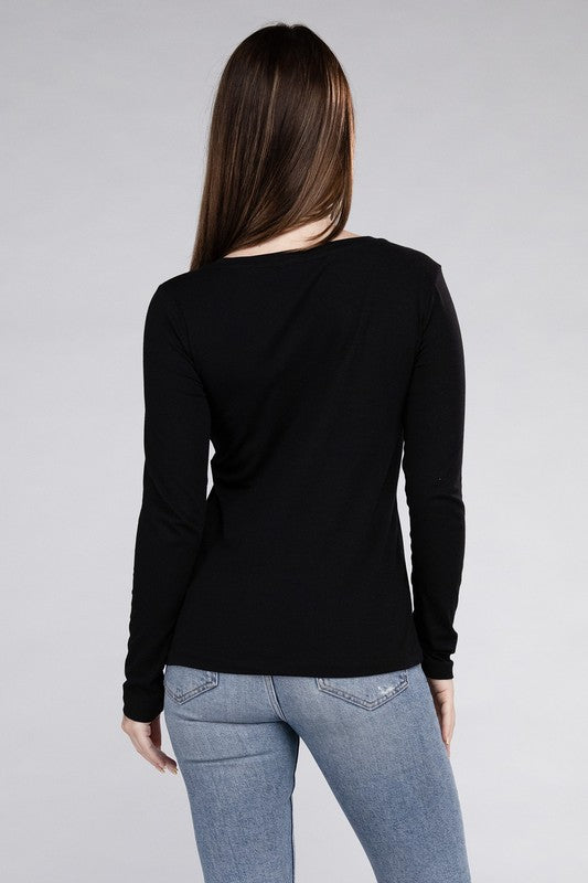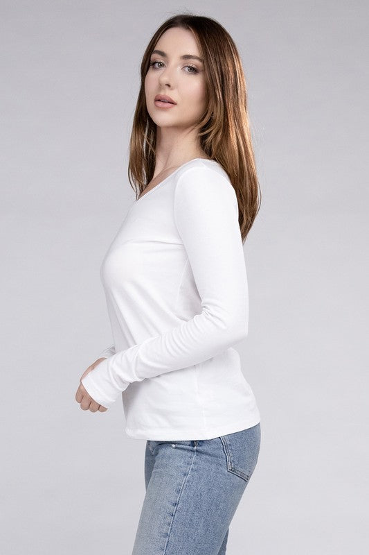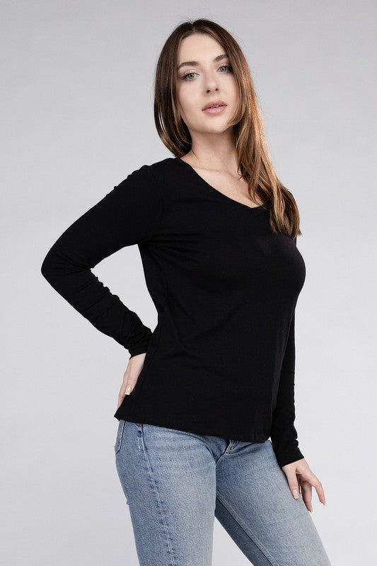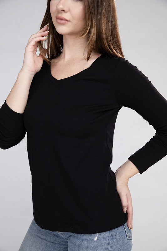 The Cotton V-Neck Long Sleeve T-Shirt is a classic wardrobe staple that offers timeless style and comfort. Made from soft cotton, this shirt provides a cozy and breathable feel, making it suitable for various occasions. Its V-neck design adds a touch of sophistication to the versatile long-sleeve silhouette, making it a dependable choice for both casual and more dressed-up looks.