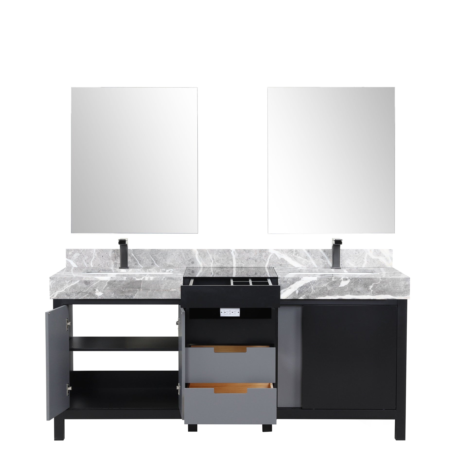 Zilara 72 in W x 22 in D Black and Grey Double Bath Vanity