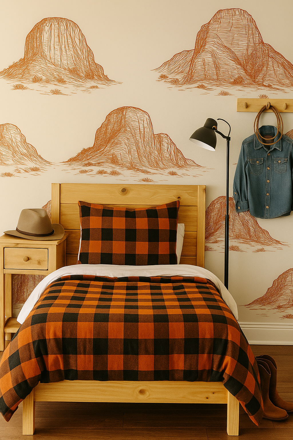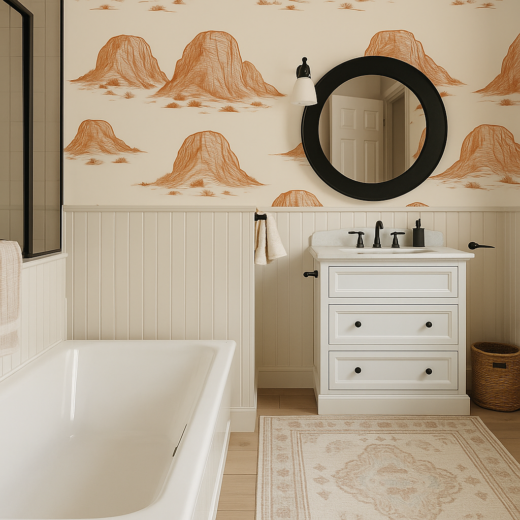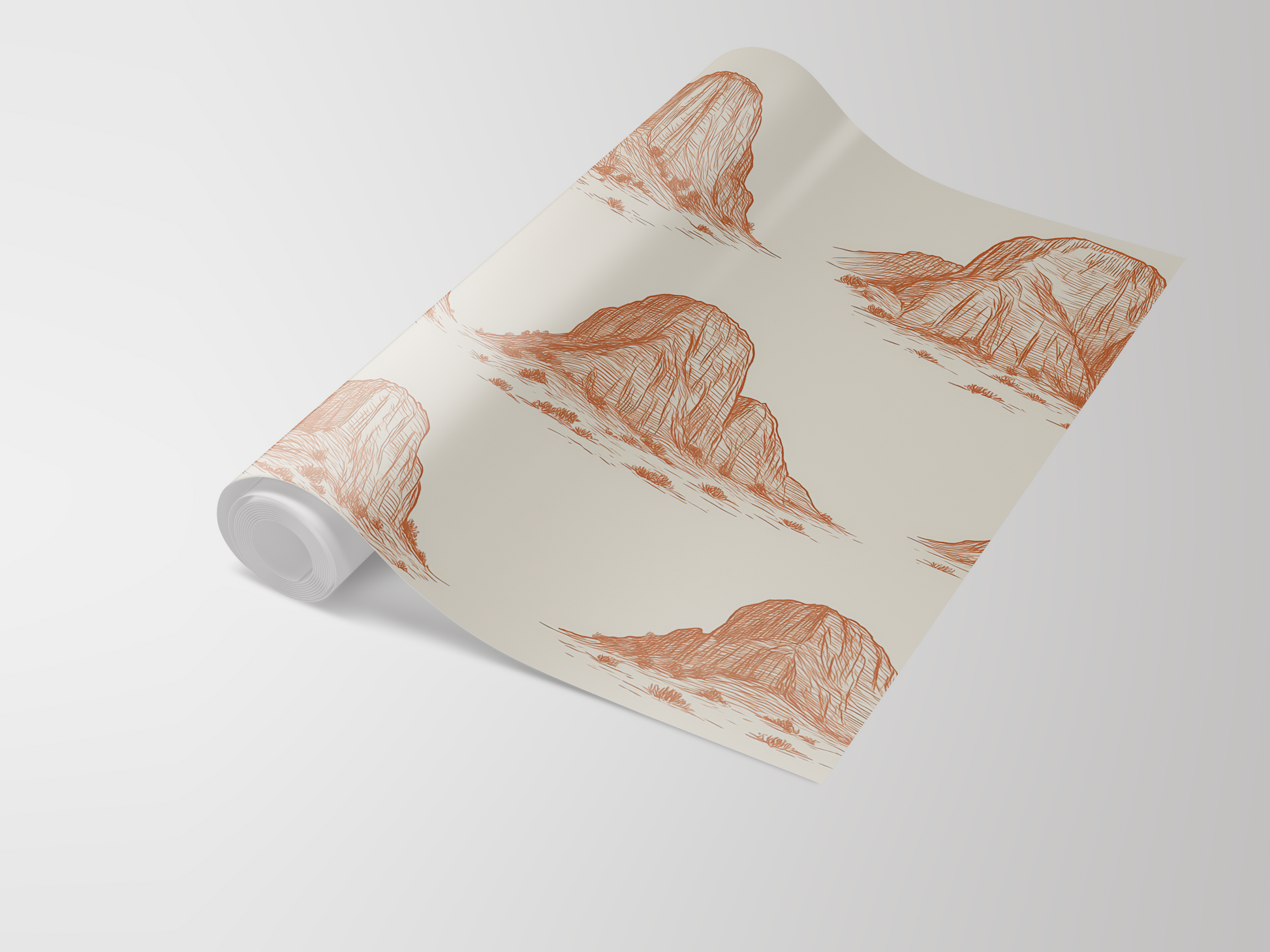 Bold, red-rock formations inspired by the dramatic landscapes of Zion National Park take center stage in this vivid pattern. With its warm palette and dynamic forms, Zion Hike brings the heat and energy of the Southwest to your walls. It’s made for statement spaces—entryways, home offices, or anywhere that deserves a dose of wild beauty.