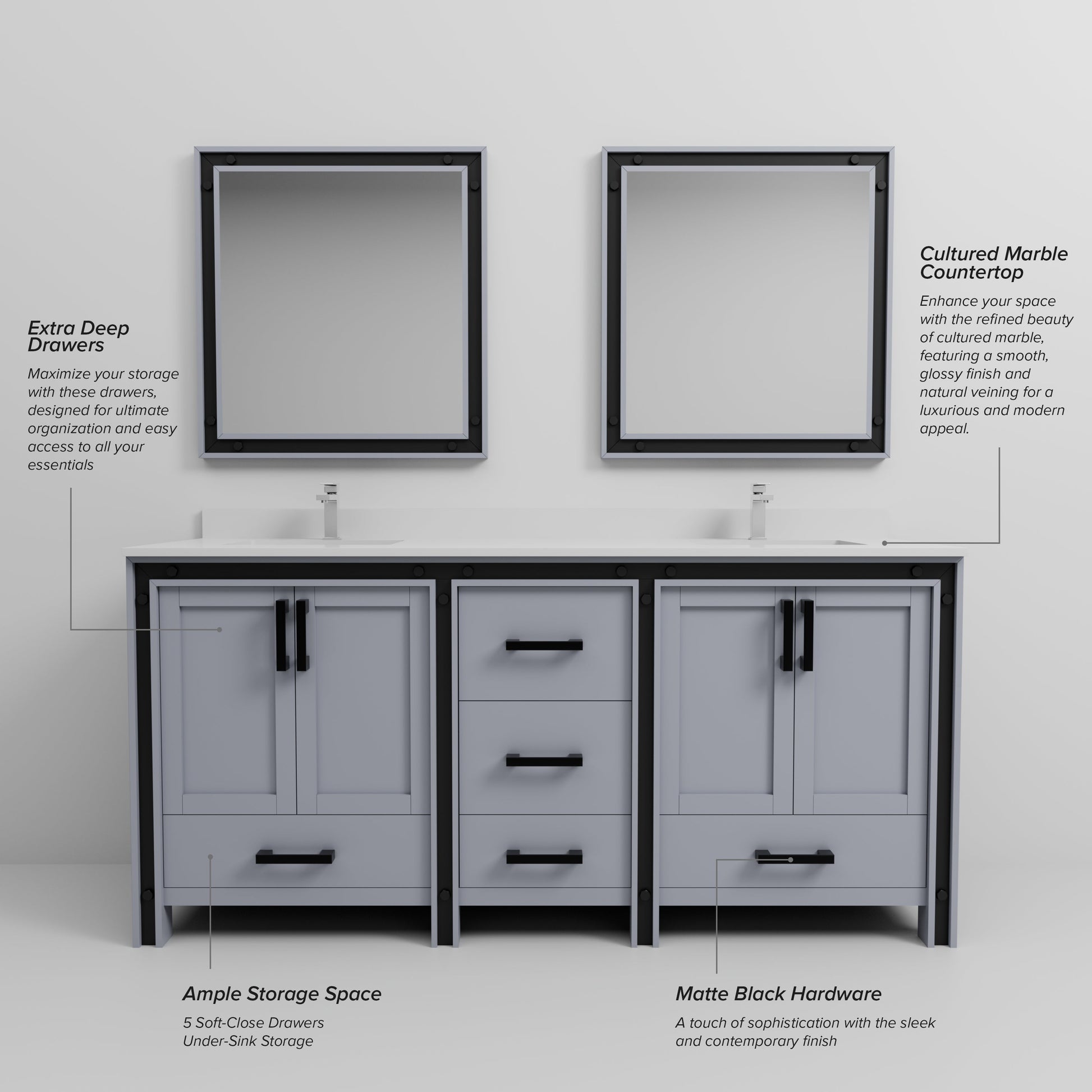 Ziva 72 in W x 22 in D Dark Grey Double Bath Vanity