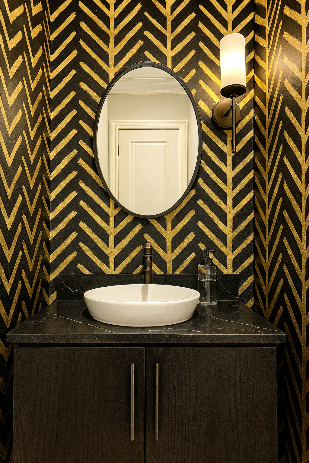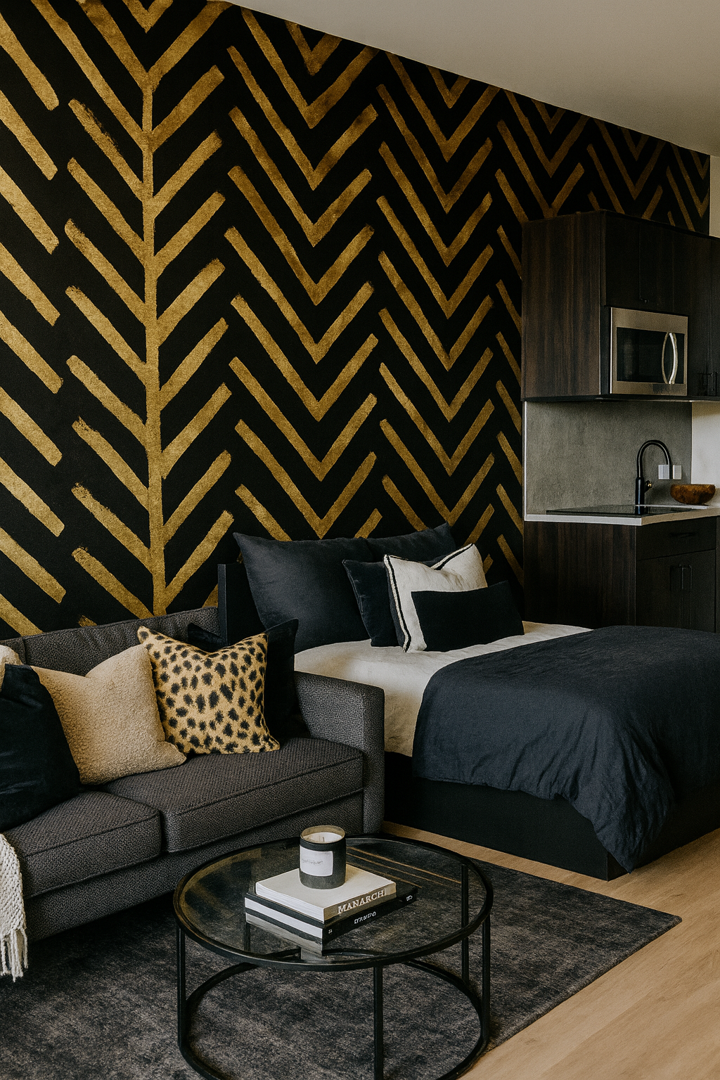 Inspired by traditional African mud cloths, Zulu Gold modernizes the motif with thick, hand-painted chevron stripes in raw gold on matte black. The imperfect texture adds movement and grit, making this pattern perfect for boho-glam bedrooms, tribal-chic offices, or eclectic living rooms that lean bold and global. It’s pattern with a pulse.